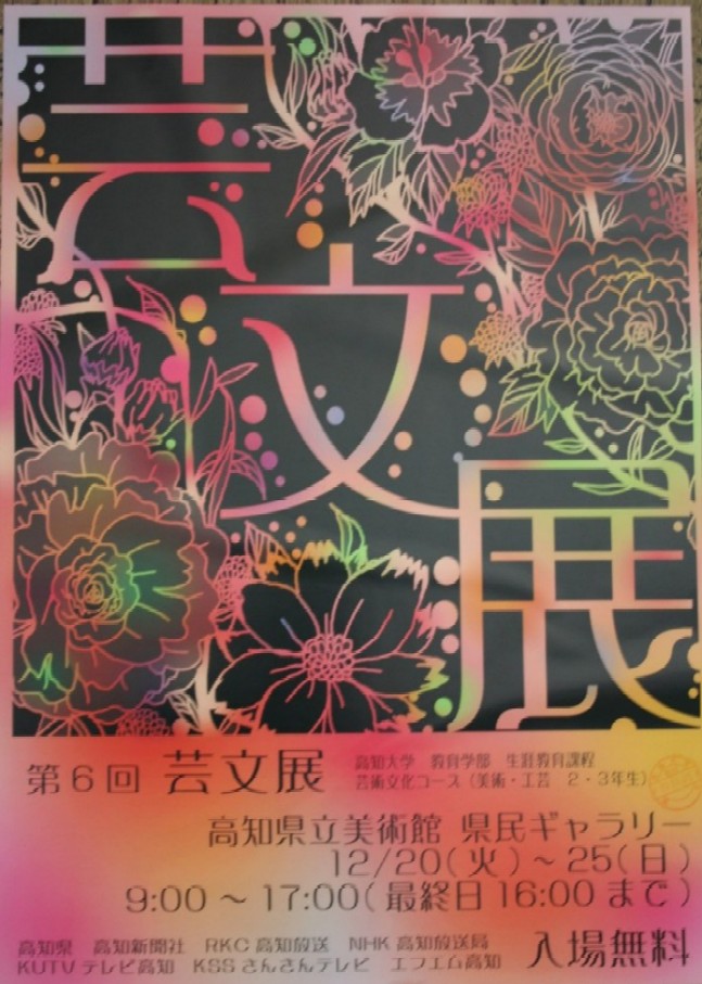 教育学部生涯教育課程芸術文化コース(美術・工芸) 2・3年生の授業制作及び自由制作の作品(西洋画・日本画・金工・木工・デザイン・立体)約70点を展示しています。 美術教育・美術理論のパネル展示もあります。入場無料ですので是非お越しください。