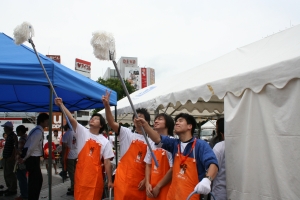 | 平成19年7月8日(日)、高知市の中央公園にて「2007こじゃんとよっちょれ祭」が開催されました。この祭りは若者による地域活性化と地域との交流を目的として、高知県内にある大学、高知大学、高知女子大学、高知工科大学の三大学の学生が運営しています。 今年のテーマは『縁〜人でつなげる笑顔の輪〜』。人と人とのつながりを大切にすることや、この祭りで色々な人に出会うということが込められています。 目玉イベントとして約1200人分に相当する「地球33番地焼」(3.3メートルものお好み焼き)を祭り中に焼き上げ、来祭者の皆さんにふるまいました。 それでは、当日の様子をご覧下さい。 |