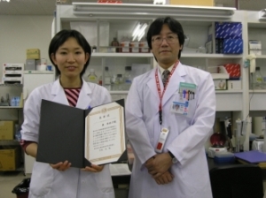 が優秀演題賞を受賞しました。 森さんは、本学術集会において 「ヘリコバクター・ピロリ細胞分裂関連遺伝子cdrAおよびftsZの関連性について」 と題する発表 を行い、その結果、本学術集会での全発表演題の中から、その研究内容が優秀と評価されたものです。 |