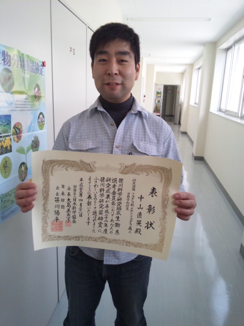 | 高知大学大学院・応用自然科学専攻(博士2年)中山直英さん 平成22年度笹川科学研究奨励賞受賞 |