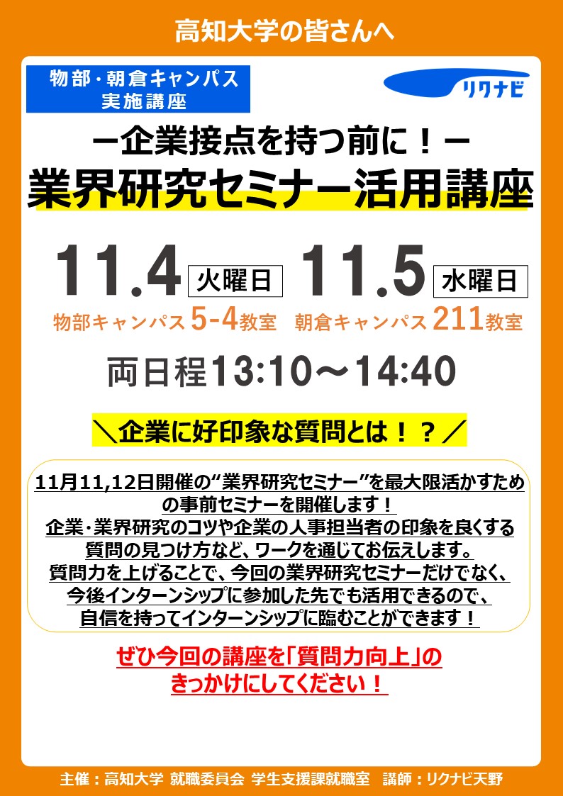 - 1月21日2/12『学内業界研究セミナー』を開催します