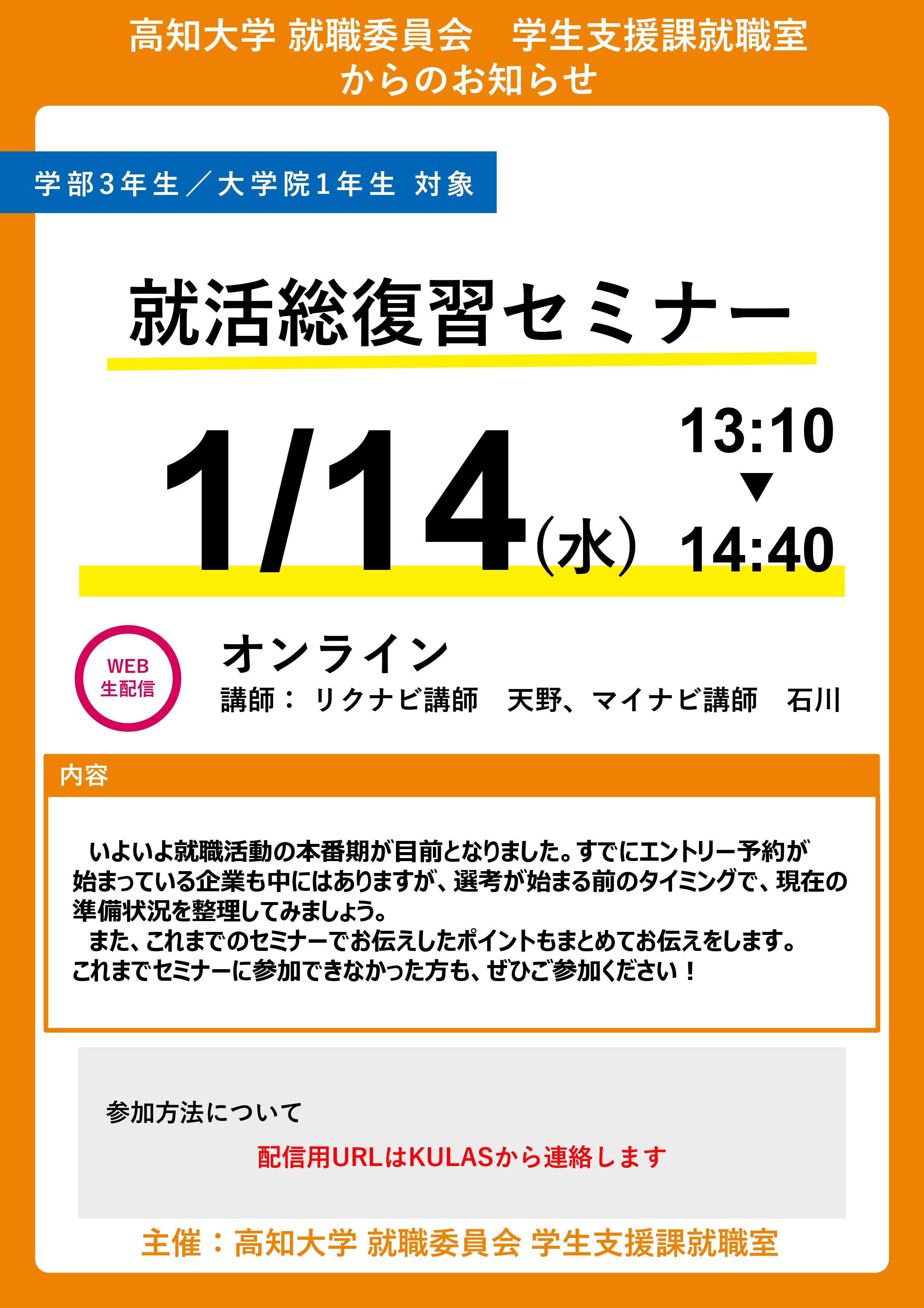 - 9月4日在学生の方へ|10/14開催分からの就活ガイダンスの情報を更新しました