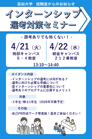 『インターンシップ選考対策セミナー』を開催します