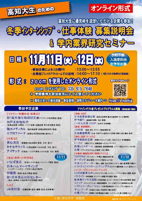 対象:全学年(業界・企業研究に興味がある高知大学生)