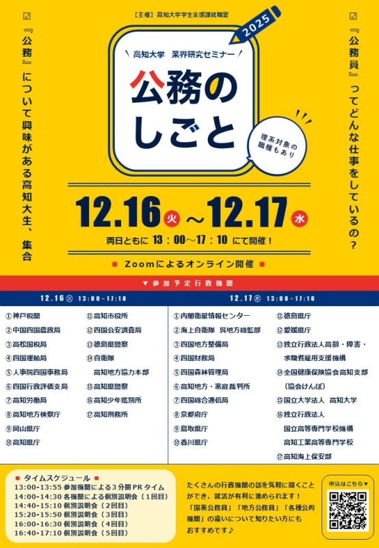 参加対象:公務員に興味のある高知大学生(全学年対象)