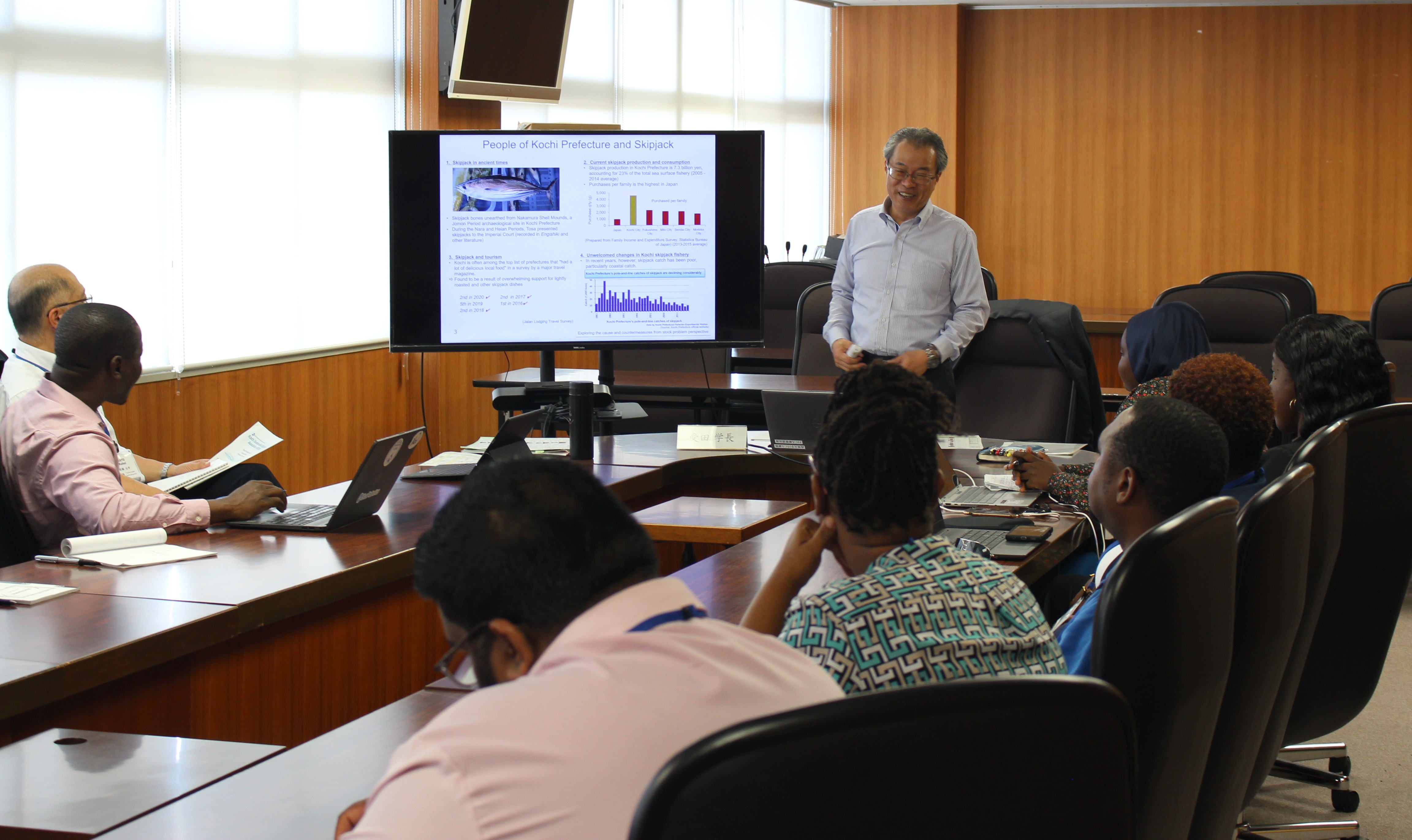 本研修では、モルディブ、東ティモール、ミクロネシア、ナウル、バヌアツ、ケニアなど11ヶ国11名の行政官等に対し、国や高知県の産学官が主導して進めているカツオ資源の持続的な管理と利用を中心とする様々な取組を紹介しました。