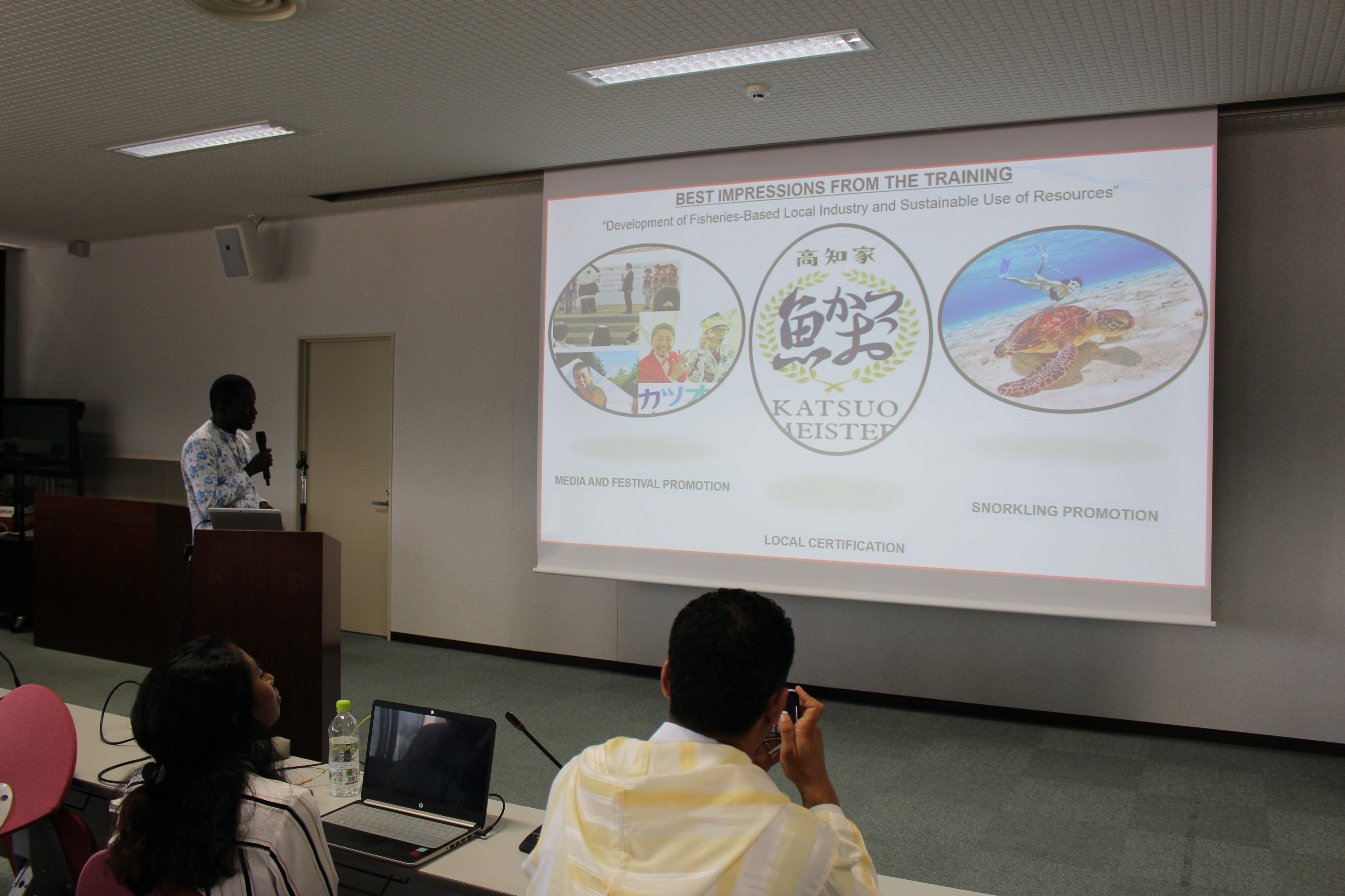 現在、高知沿岸のカツオ資源は減少が続いており、カツオ資源を我々が持続的に利用するためには、国内はもちろんのこと国際的理解も不可欠です。高知大学では、高知県の重要な産業であり、また日本人にとっての貴重な食文化でもあるカツオ資源の持続的な利用を今後も可能とするため、本研修のような国際協力を通じた取組を進めていきます。