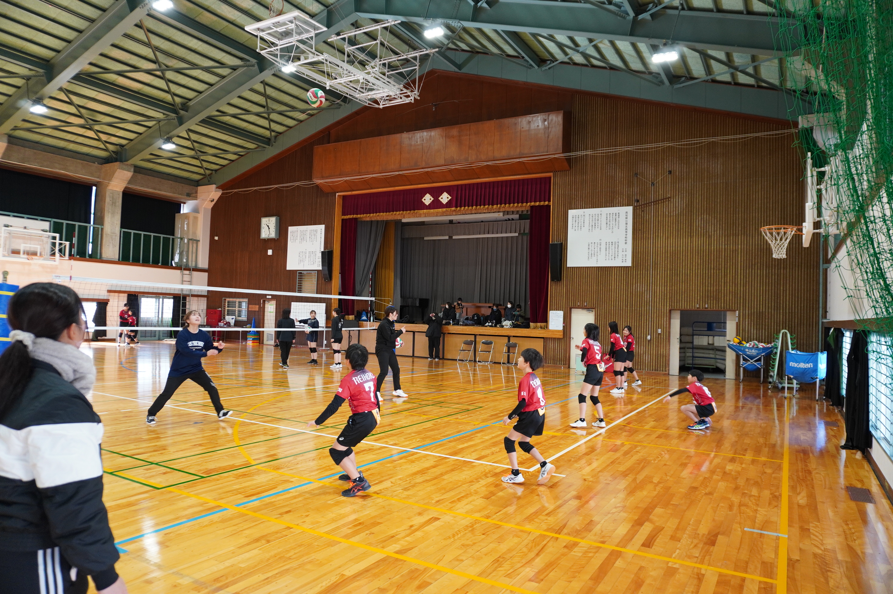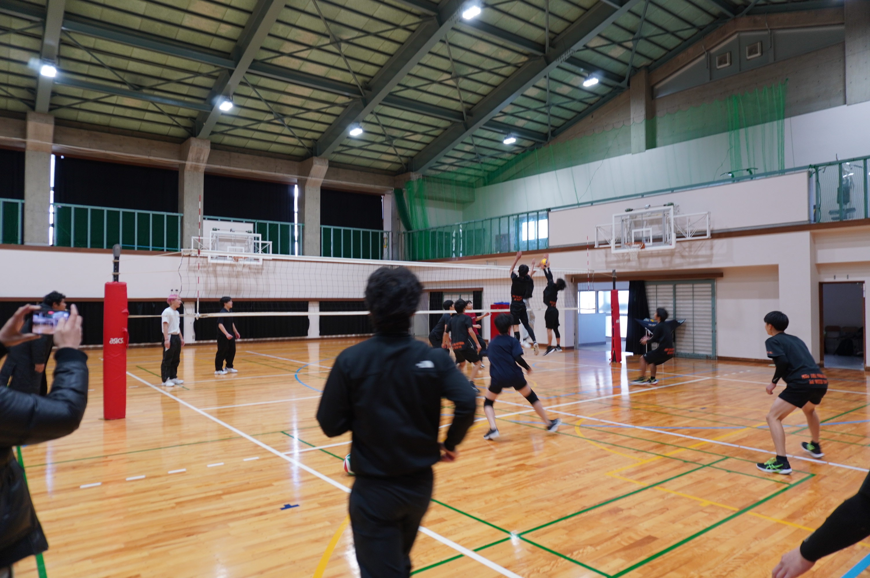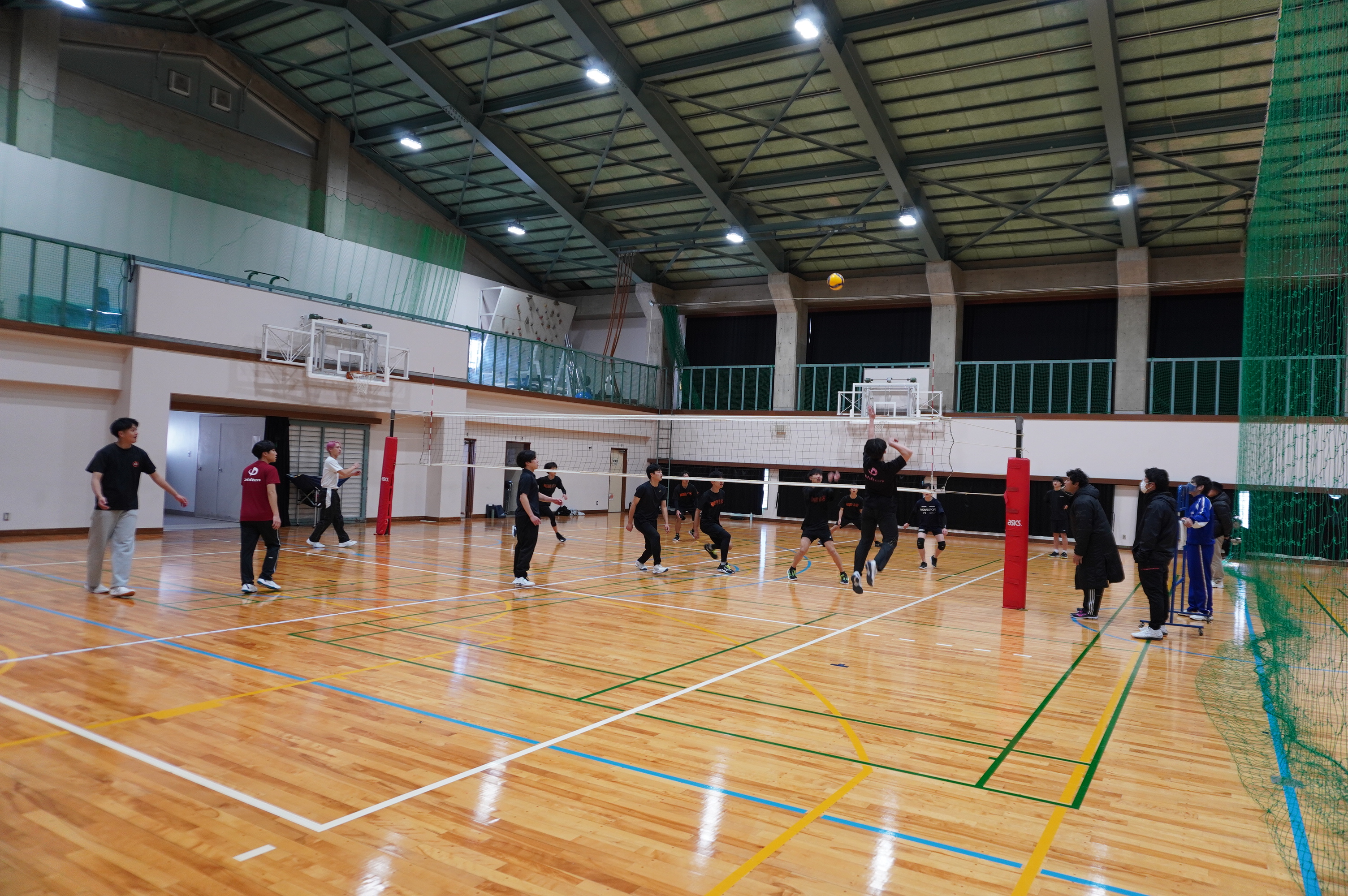 当日は嶺北高等学校の体育館で、男子バレーボール部から学生6名、女子バレーボール部から学生6名が参加。本山町からは小学生15名、中学生9名の合わせて24名に参加いただき、総勢36名による世代を超えた交流の場となりました。