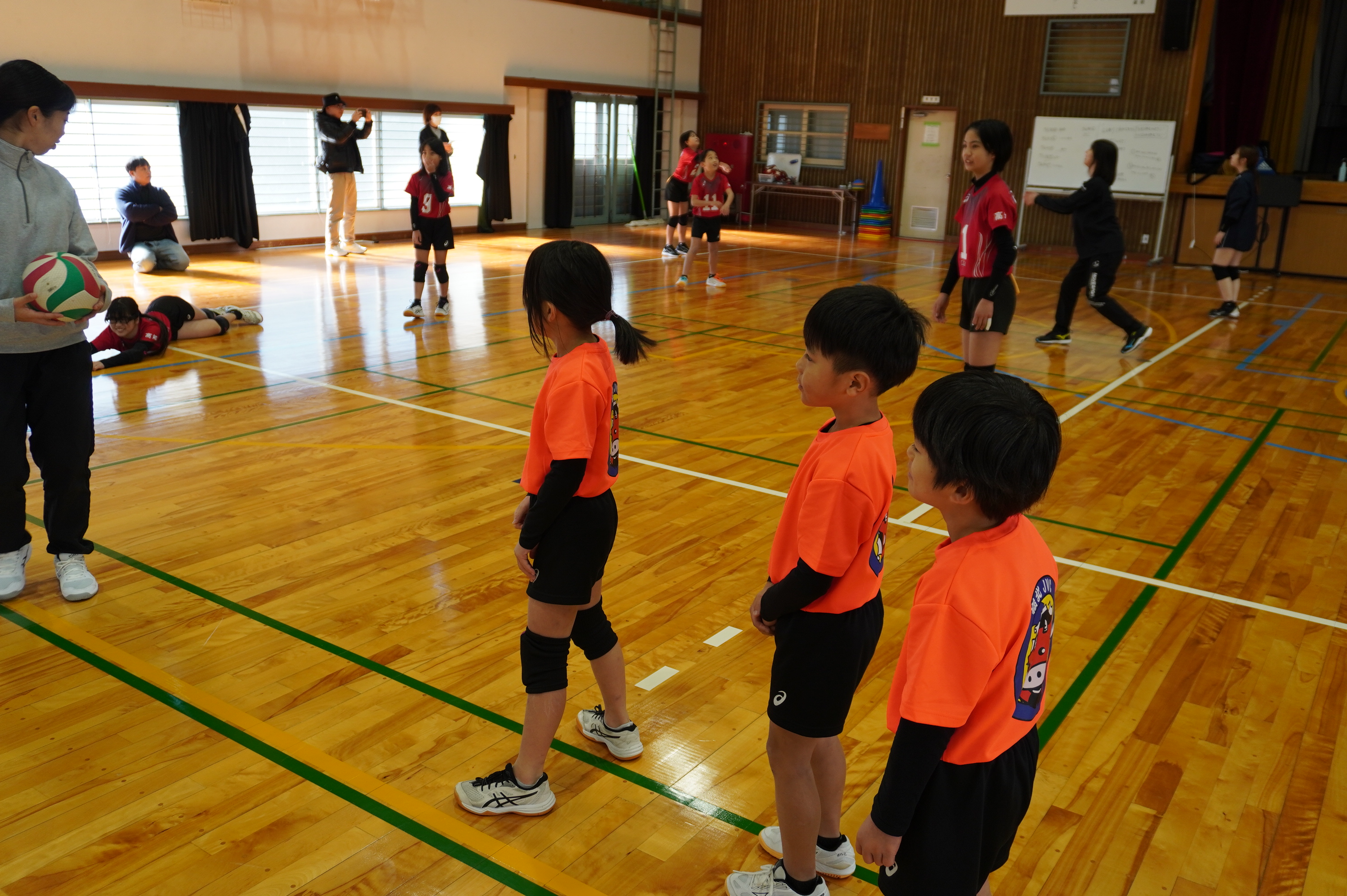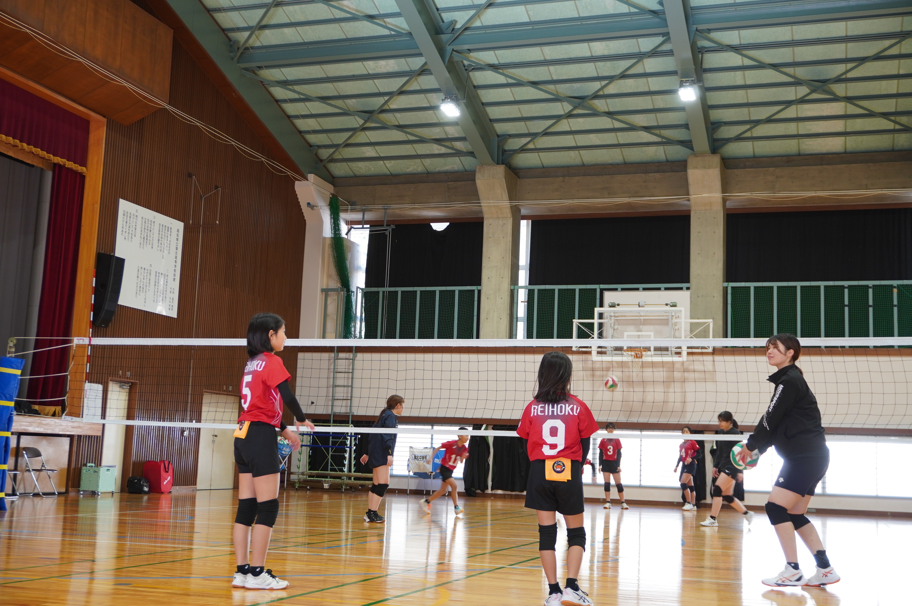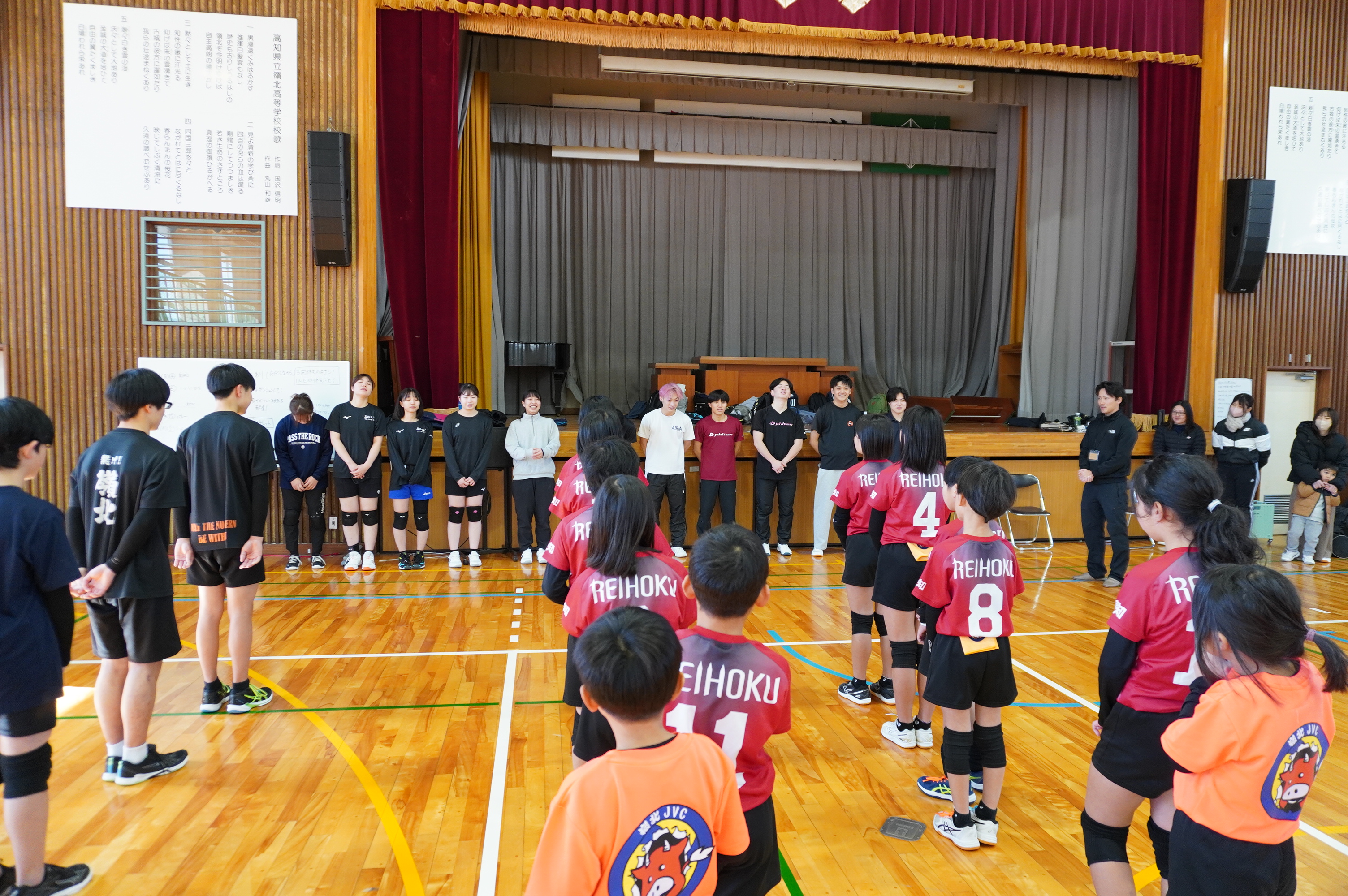当日は嶺北高等学校の体育館で、男子バレーボール部から学生6名、女子バレーボール部から学生6名が参加。本山町からは小学生15名、中学生9名の合わせて24名に参加いただき、総勢36名による世代を超えた交流の場となりました。