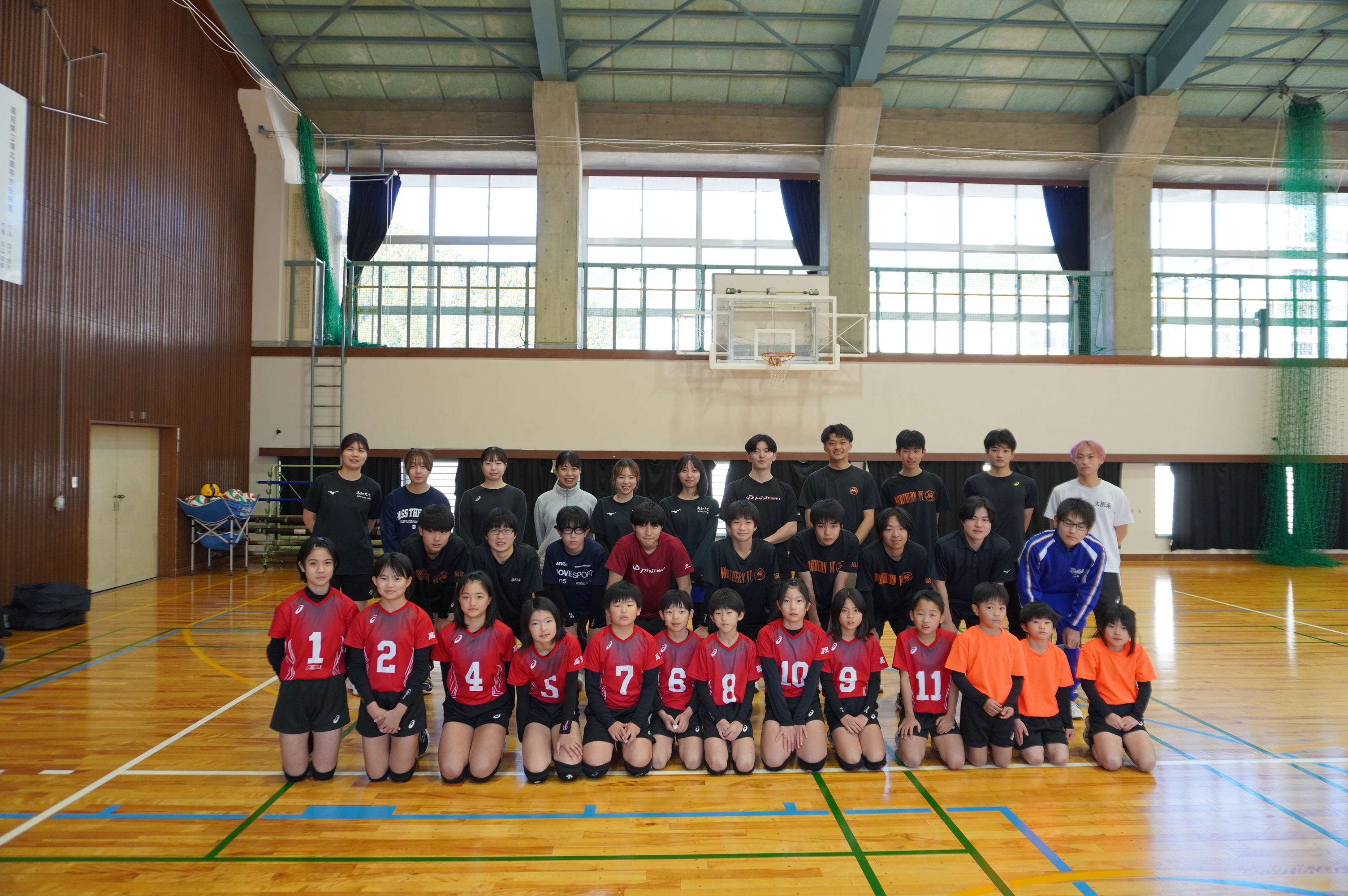 今回は第3弾としてバレーボール教室を開催しました。この企画は本山町教育委員会から幅広い年齢層に人気があるバレーボールの教室をぜひ開催してほしいとの要望を受け、高知大学男子バレーボール部と女子バレーボール部に打診したところ、学生たちが「ぜひお役に立ちたい!」と応えて準備をしてくれました。