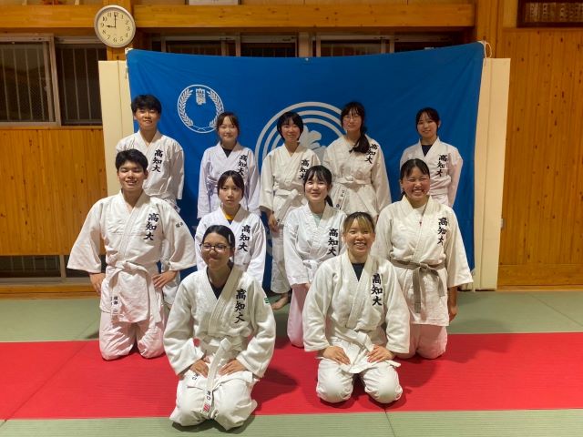 現在合気道部は約18名で活動しています。部活動の内容としては、主に合気道の技の習得及び練習です。先輩方やOBや師範代など様々な人と稽古を行い、合気道の技を身に付けていきます。また、年に2回行われる昇級審査では、今まで練習した技を使って、審査を行います。