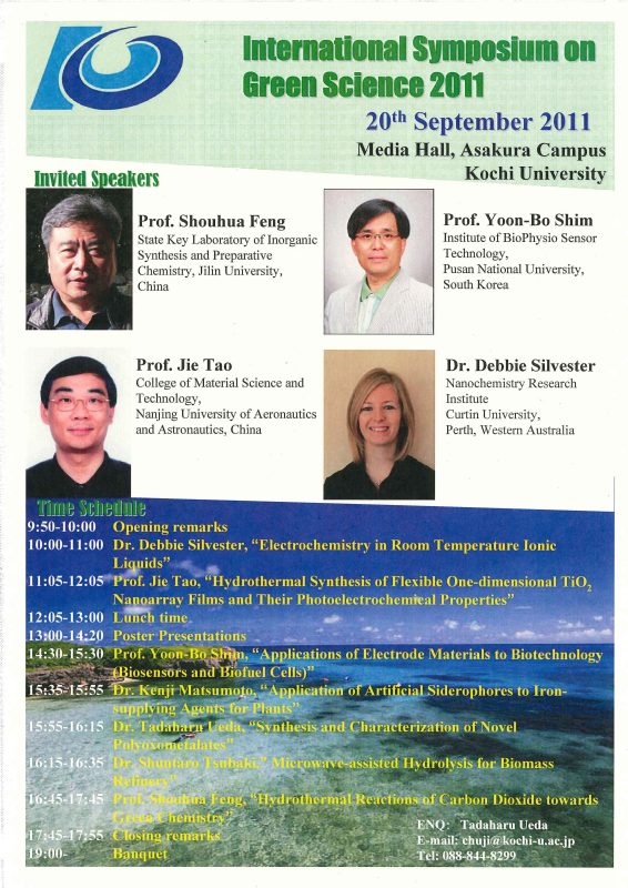 高知大学総合科学系複合領域科学部門では、海外から4名の研究者を招待し,グリーンサイエンスに関する国際シンポジウムを開催します。