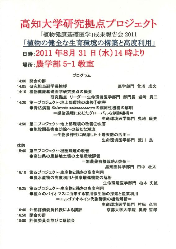 「植物健康基礎医学」成果報告会2011開催のご案内