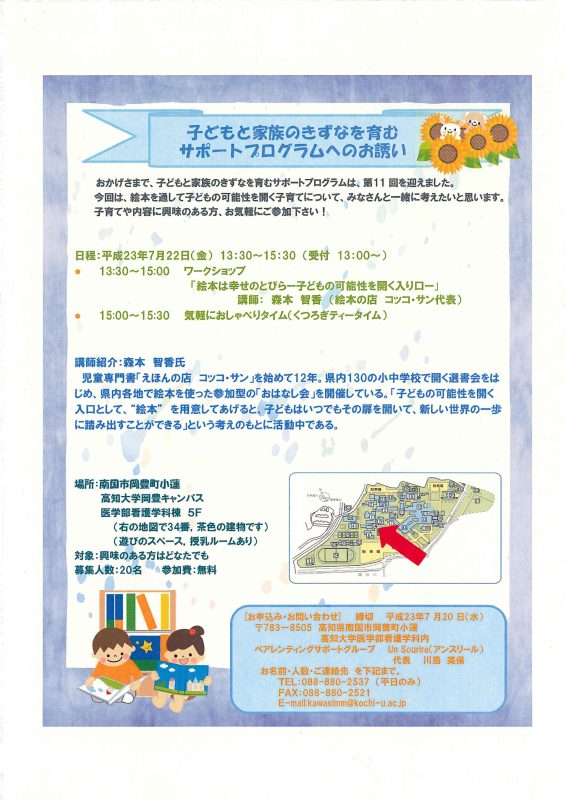 平成23年7月22日(金)、「第11回子どもと家族のきずなを育むサポートプログラム」が行われます。