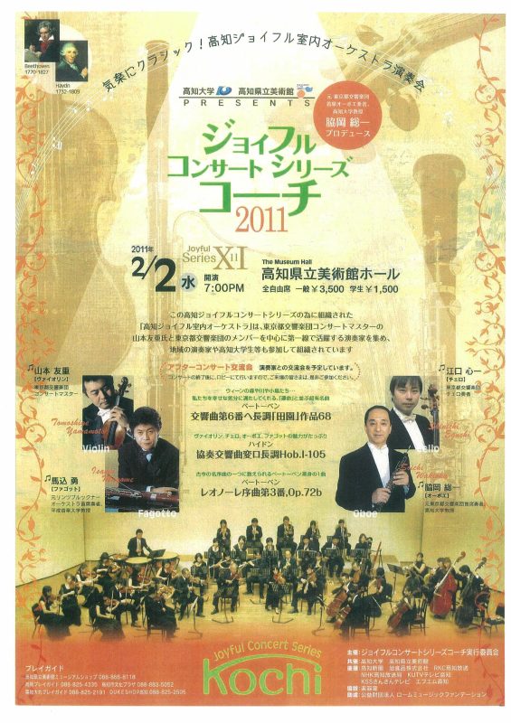 平成23年2月2日(水)、教育学部 脇岡総一教授プロデュースによる、気楽にクラシック!高知ジョイフル室内オーケストラ演奏会「ジョイフルコンサート2011」が開催されます。