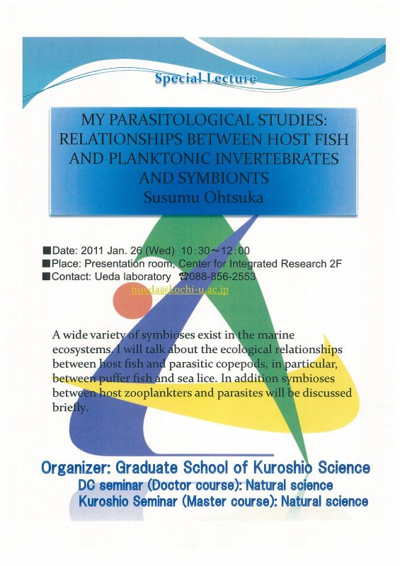 On Wednesday, January 26, 2011, the Department of Integrated Sciences of the Kuroshio Region will host a lecture featuring Professor Osamu Otsuka of the Setouchi Region Field Science Education and Research Center, affiliated with the Institute of Biosphere Science at Hiroshima University.