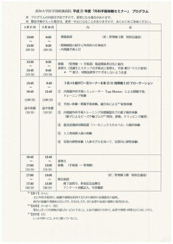 A "Surgical Procedure Experience Seminar" will be held at the University Hospital on Saturday, March 27, and Sunday, March 28, 2010.