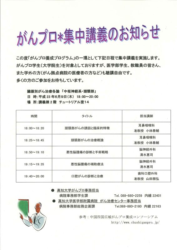 平成23年度【がんプロ】集中講義の開催について