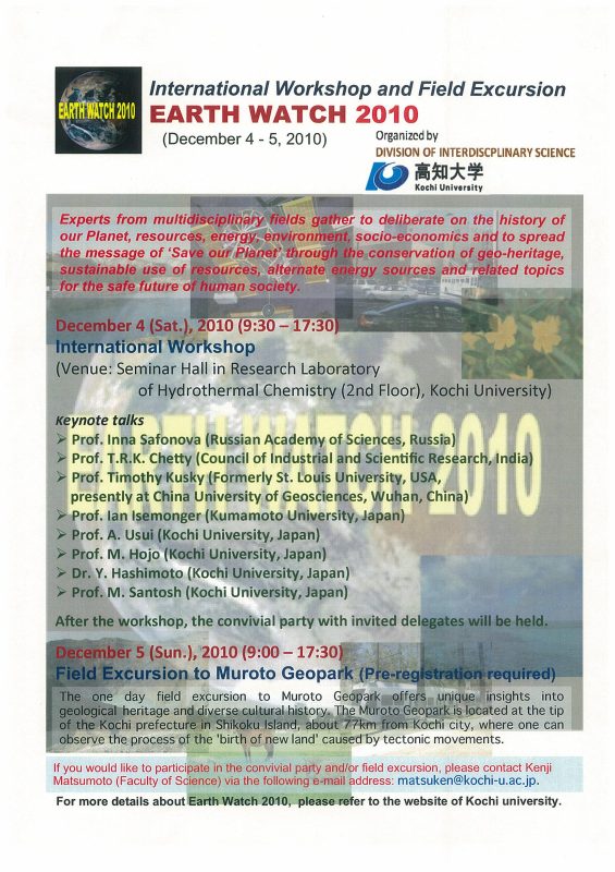 「International Workshop and Field Excursion”Earth Watch 2010″」