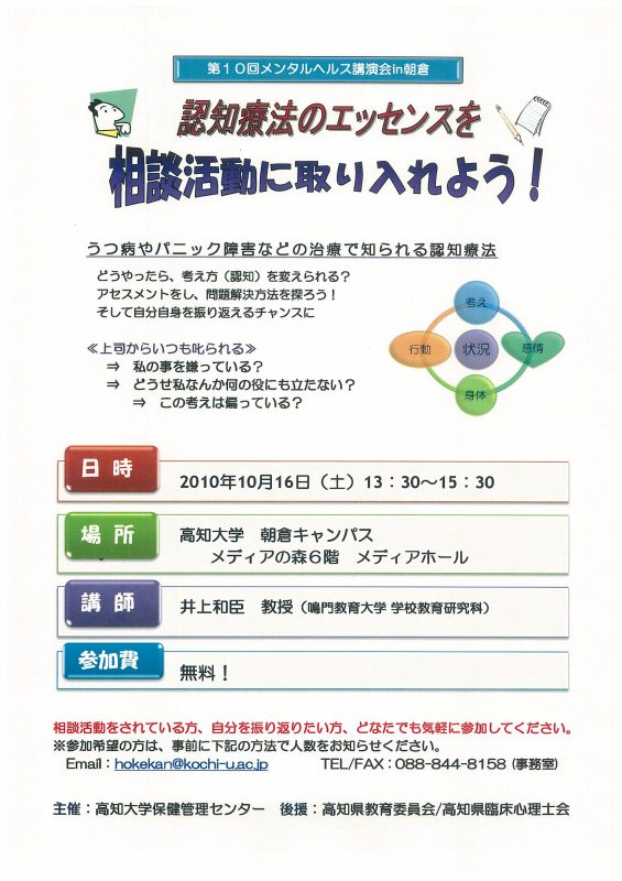 【演題】 『認知療法のエッセンスを相談活動に取り入れよう』