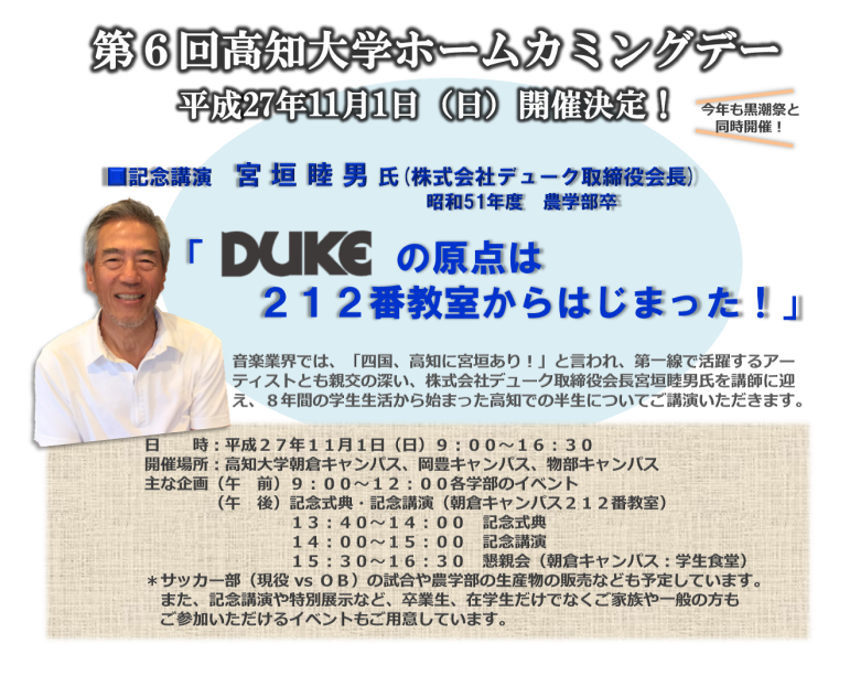 第6回高知大学ホームカミングデー(参加申込み受付中!イベントタイムスケジュール更新しました10/21)