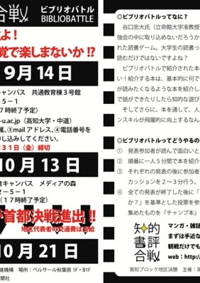 知的書評合戦ビブリオバトル高知ブロック地区予選・地区決勝(9月14日、10月13日)