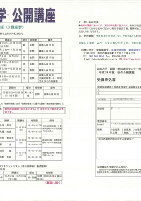 平成24年度「秋の公開講座」開催のお知らせ(10月5日~2月10日)