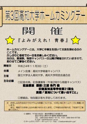 講演会、公開講座、研究発表会など、高知大学が開催する様々なイベント情報をご案内します。