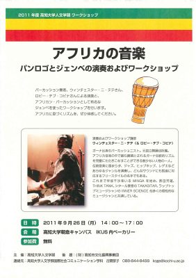 「アフリカの音楽~パンロゴとジェンベの演奏およびワークショップ~」 開催のご案内