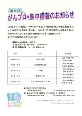がんプロ・集中講義」開催のご案内