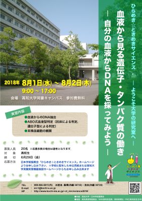 「ひらめき☆ときめきサイエンス ~ようこそ大学の研究室へ~KAKENHI」【血液から見る遺伝子・タンパク質の働き〜自分の血液からDNAを採ってみよう~】