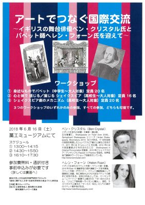 アートでつなぐ国際交流~イギリスの舞台俳優ベン・クリスタル氏とパペット師ヘレン・フォーン氏を迎えて~