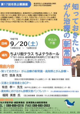 ◆第17回市民公開講座「知っておきたいがん治療の新常識」を開催します