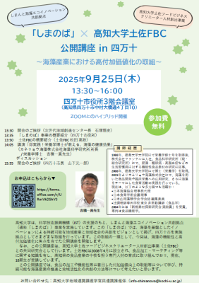 ◆「しまのば」×高知大学土佐FBC公開講座in四万十 ~海藻産業における高付加価値化の取組~ を開催します