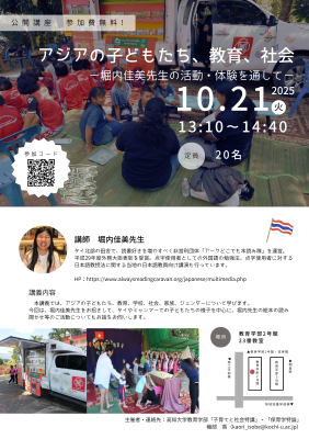 ◆公開講座「アジアの子どもたち、教育、社会―堀内佳美先生の活動・体験を通して―」を開催します