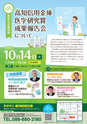 ◆第2回高知大学医学部高知信用金庫医学研究賞成果報告会を開催します