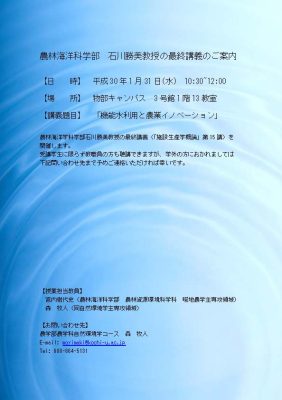 農林海洋科学部 石川勝美教授の最終講義