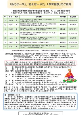 教育学部幼児教育コース 地域子育て支援広場「あそぼーや」