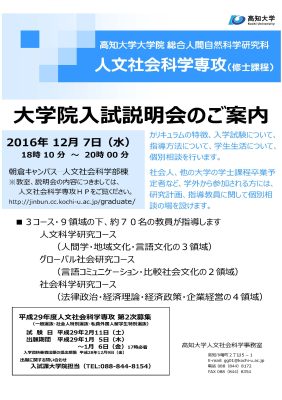 大学院総合人間自然科学研究科(修士課程)「人文社会科学専攻」入試説明会