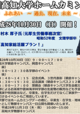 第7回高知大学ホームカミングデー(人文社会科学部イベント会場変更)