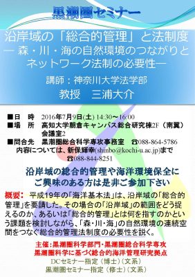 黒潮圏セミナー「沿岸域の「総合的管理」と法制度-森・川・海の自然環境のつながりとネットワーク法制の必要性-」