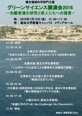 グリーンサイエンス講演会2016 ~先駆者達の研究と若人たちへの提言~