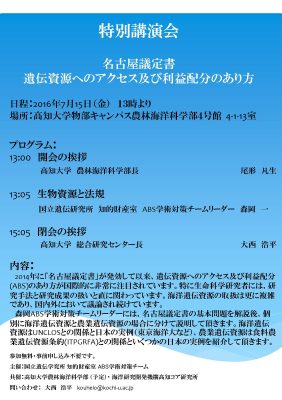 特別講演会「名古屋議定書遺伝資源へのアクセス及び利益配分のあり方」