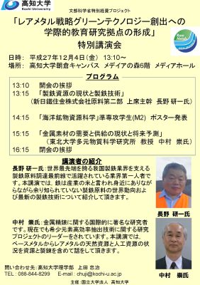 「レアメタル戦略グリーンテクノロジー創出への学際的教育研究拠点の形成」特別講演会