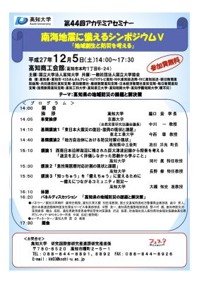 第44回高知大学アカデミアセミナー 南海地震に備えるシンポジウムⅤ「地域創生と防災を考える」