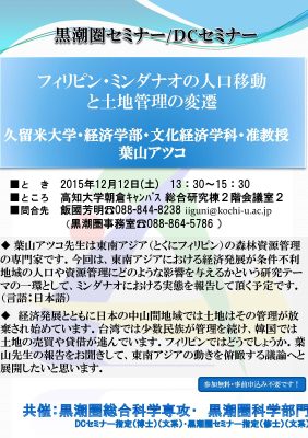 黒潮圏セミナー/DCセミナー「フィリピン・ミンダナオの人口移動と土地管理の変遷」