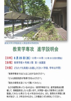 大学院総合人間自然科学研究科「教育学専攻」進学説明会