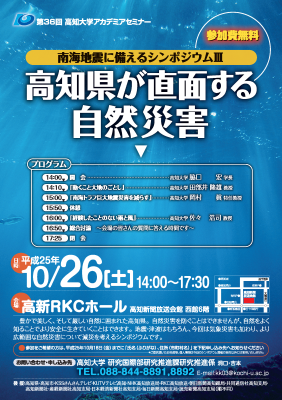 第36回高知大学アカデミアセミナー『南海地震に備えるシンポジウムⅢ「高知県が直面する自然災害」』