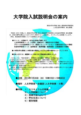 大学院総合人間自然科学研究科「人文社会科学専攻」入試説明会