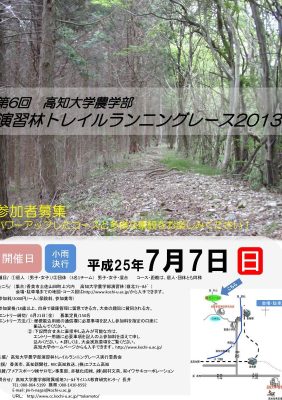 第6回 高知大学農学部演習林トレイルランニングレース2013の参加申込み受付を終了しました。